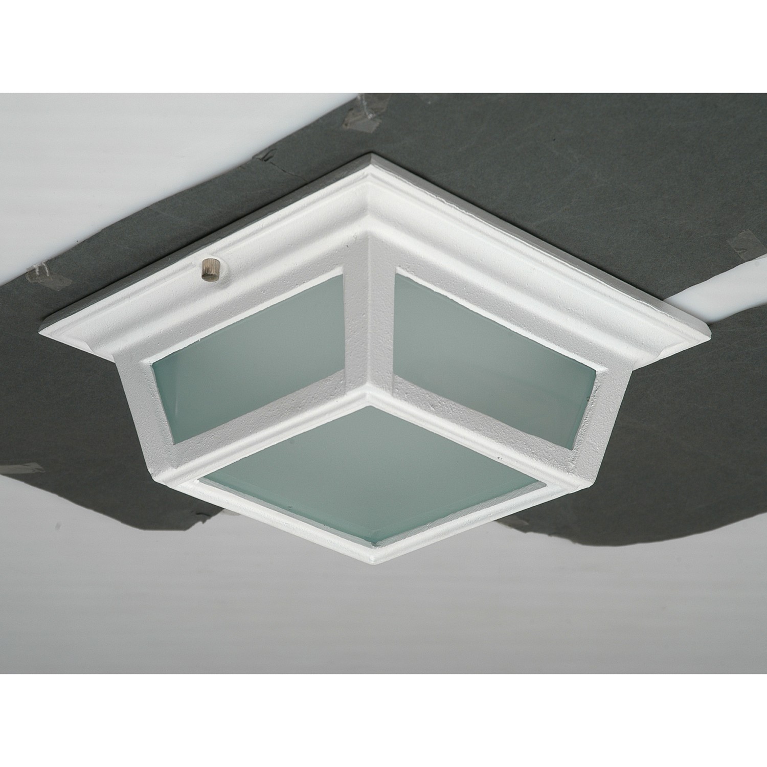 Plafón de techo de una luz fabricado en cuerpo de aluminio fundido . Cierre de vidrio transparente templado