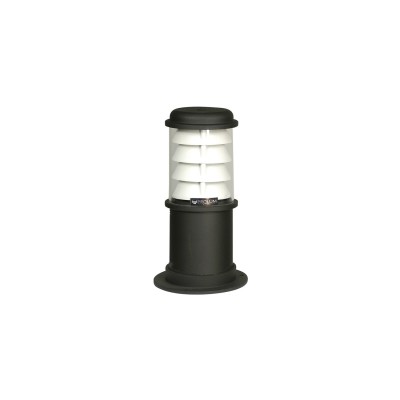 Farola de exterior compuesta con cuerpo de aluminio extruido con cabezal y base de fijación a piso en aluminio fundido. Difusor en acrílico blanco