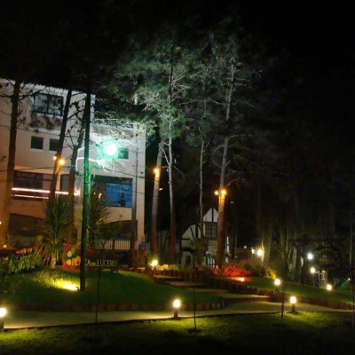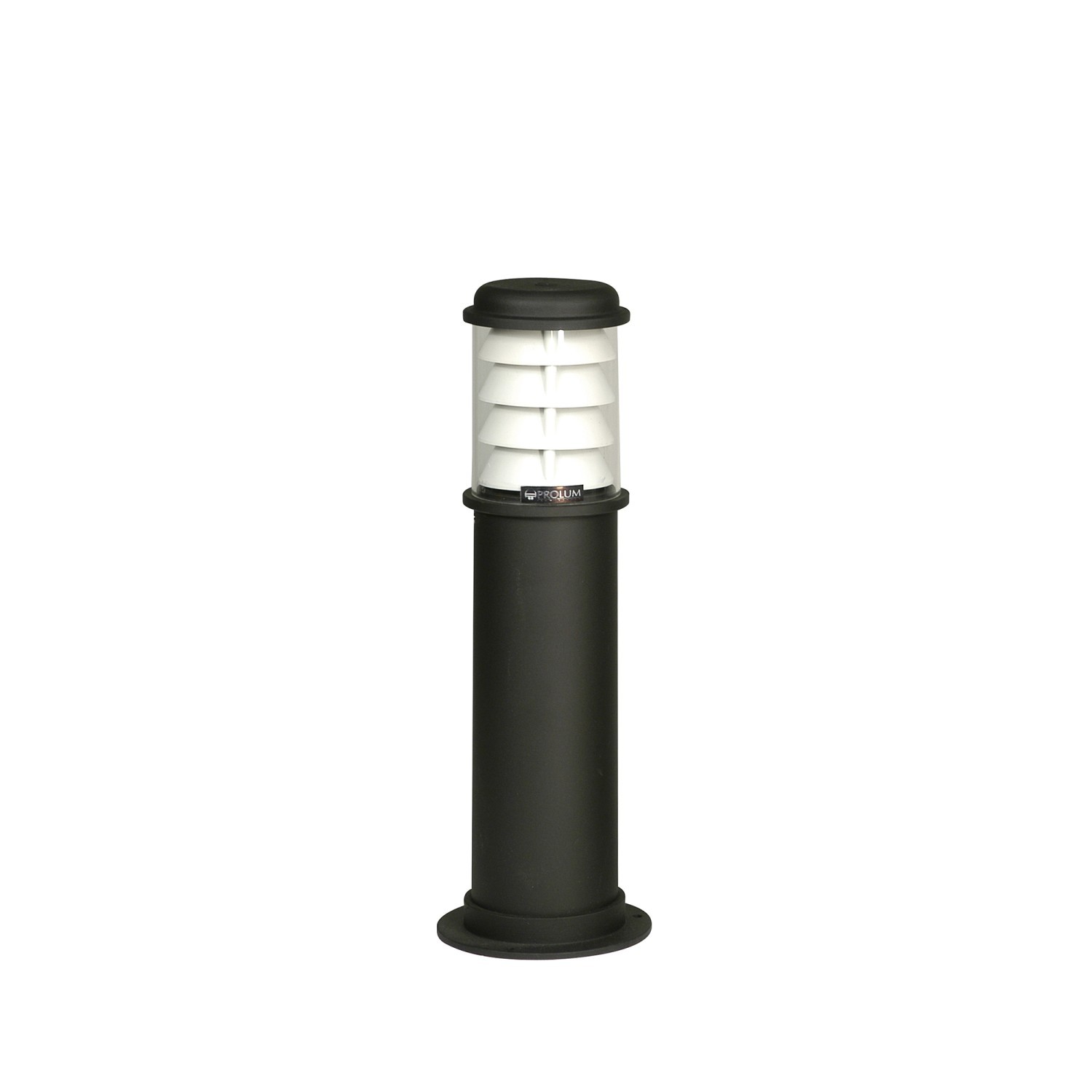Farola de exterior compuesta con cuerpo de aluminio extruido con cabezal y base de fijación a piso en aluminio fundido. Difusor en acrílico blanco