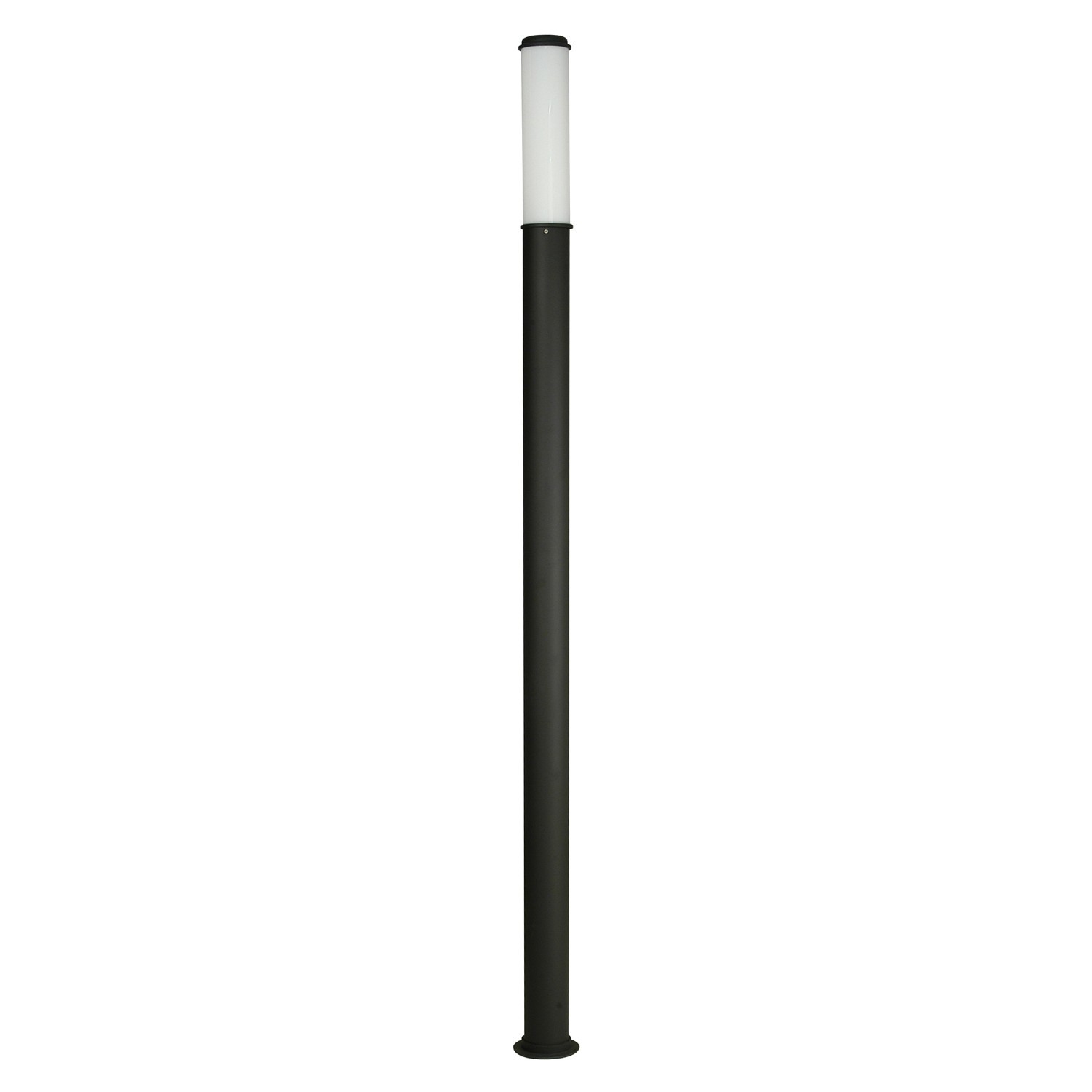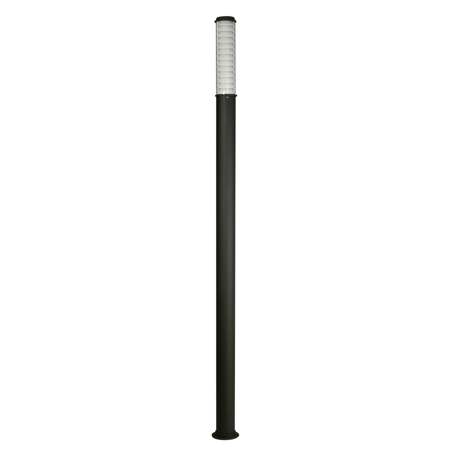Farola de exterior compuesta con cuerpo de aluminio extruido con cabezal y base de fijación a piso en aluminio fundido. Difusor en acrílico blanco-