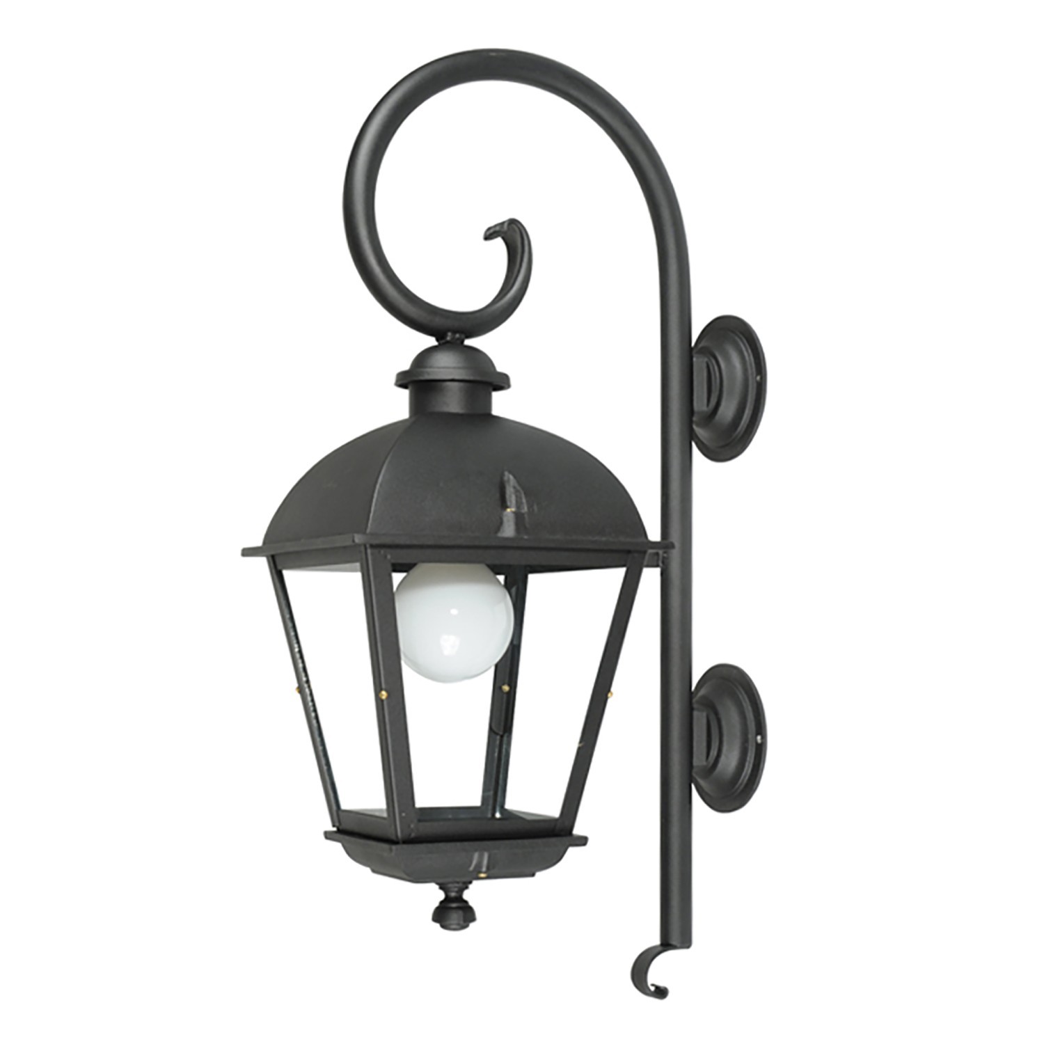 Farol con ménsula bastón para aplicar en pared , fabricado en fundición de aluminio y vidrio transparente