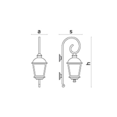 Farol con ménsula bastón para aplicar en pared. Fabricado en fundición de aluminio y vidrio transparente