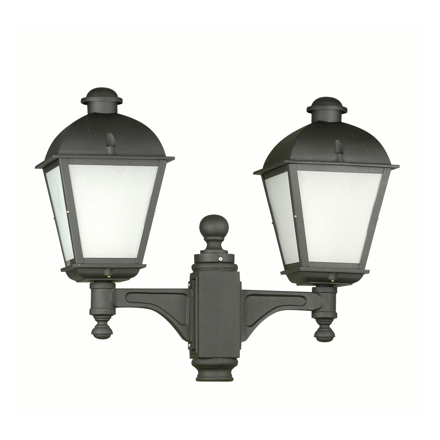 Cabezal con brazo doble para instalar sobre columna. Fabricado en fundición de aluminio y vidrio transparente