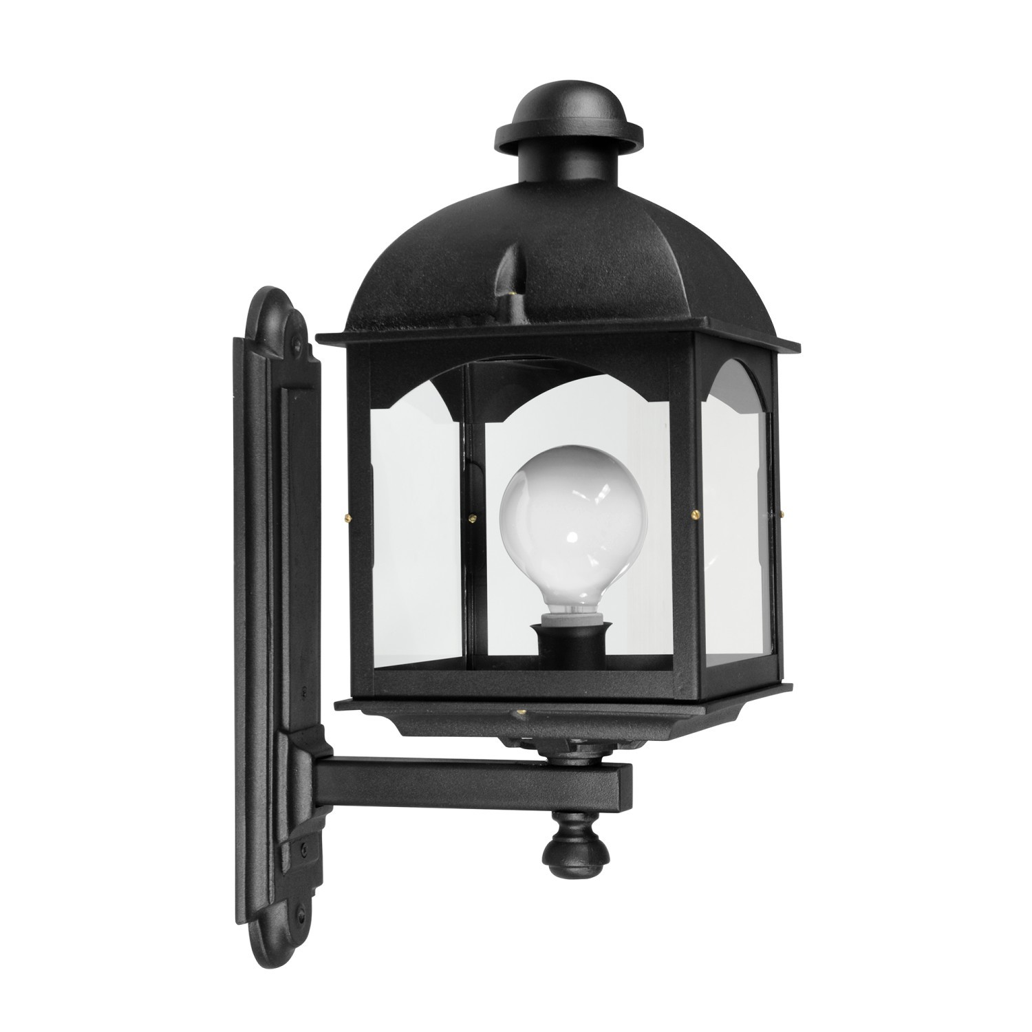 Farol con brazo recto para aplicar en pared, fabricado en fundición de aluminio y vidrio transparente