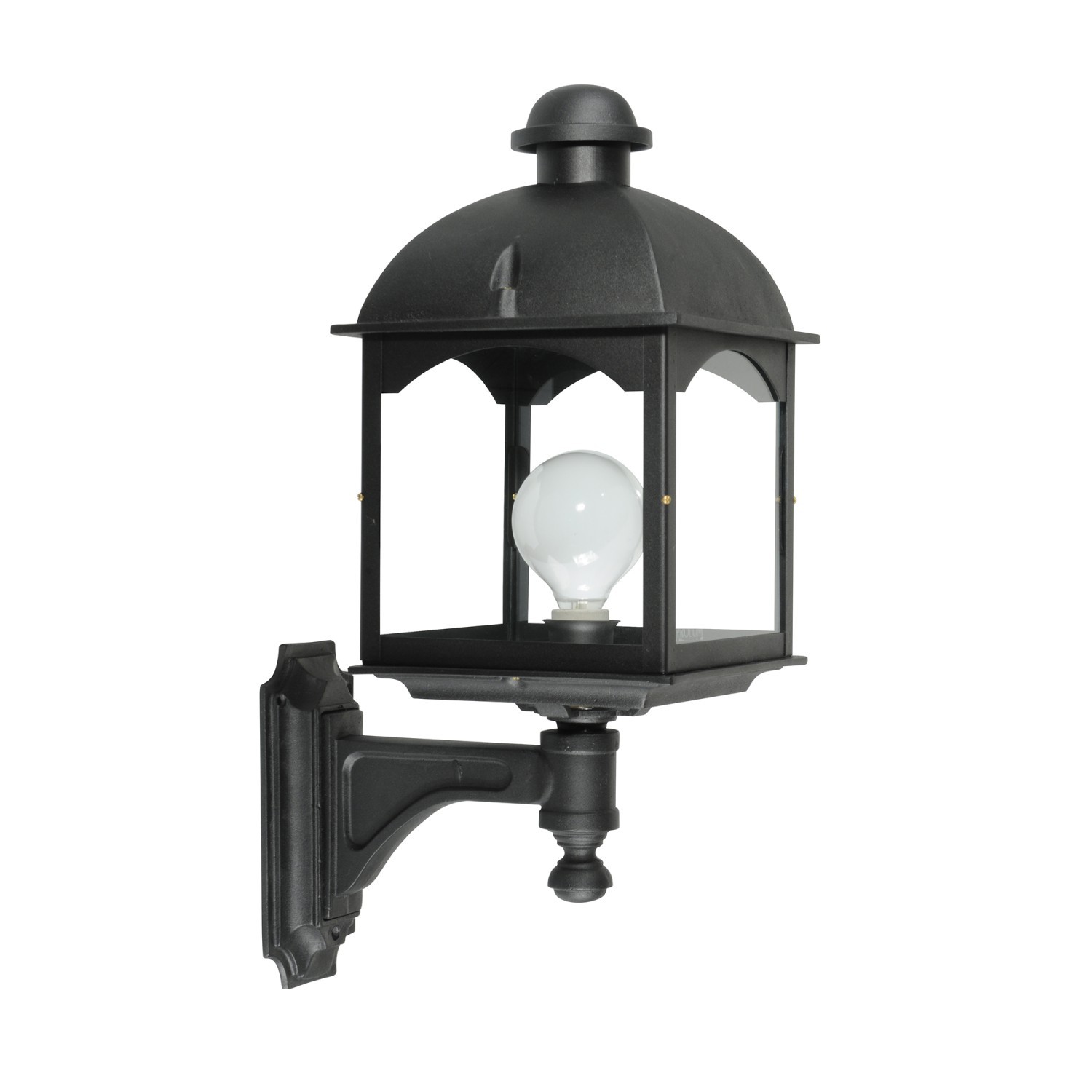 Farol con brazo para aplicar en pared, fabricado en fundición de aluminio y vidrio transparente