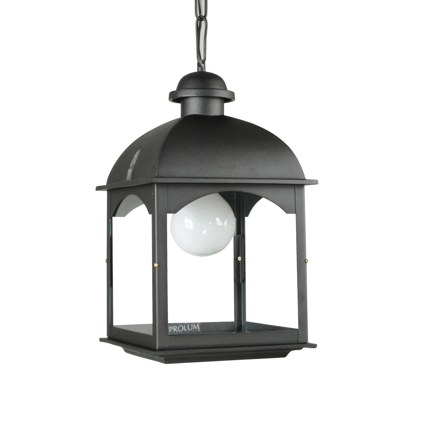 Farol de colgar en techo con cadena y florón. Fabricado en fundición de aluminio y vidrio transparente