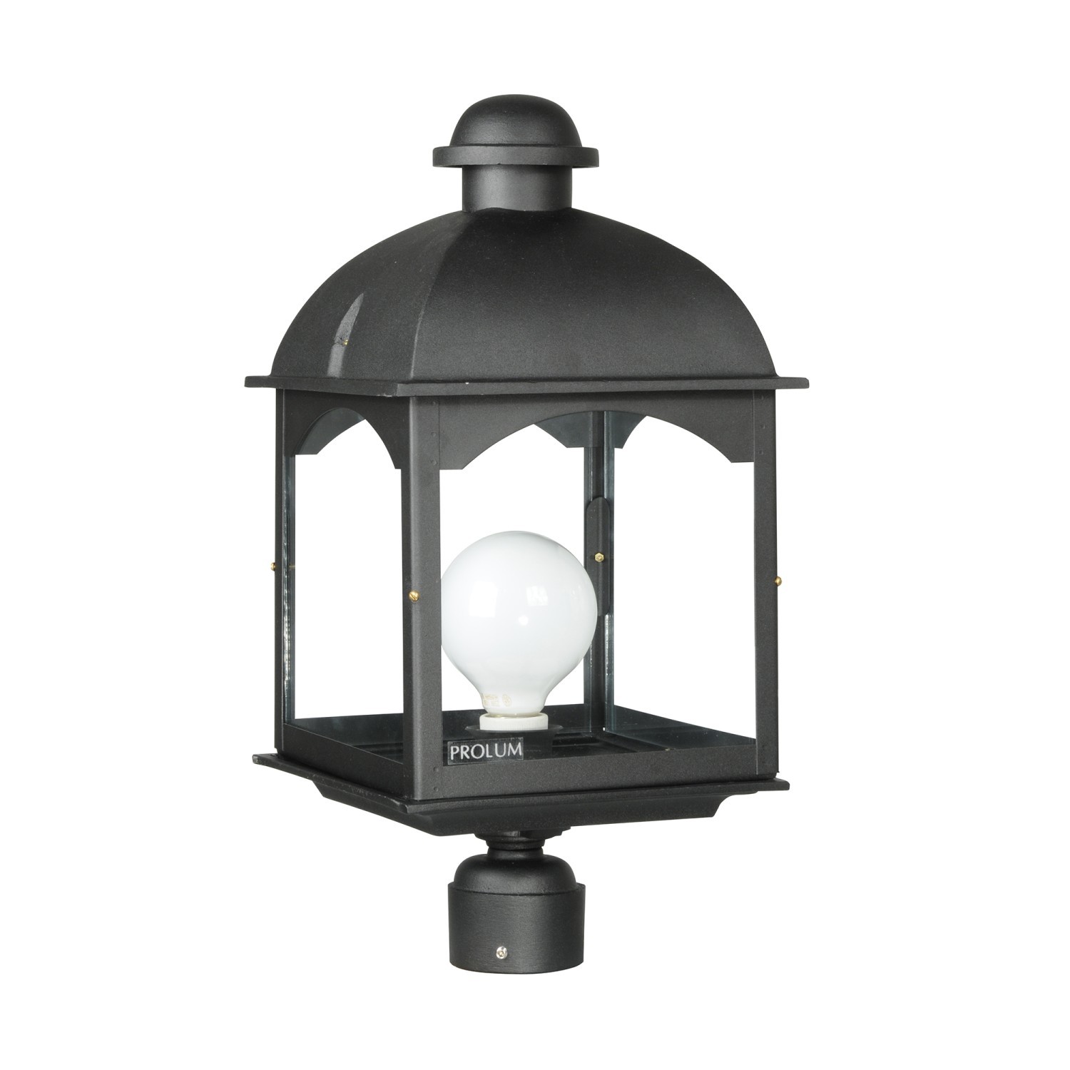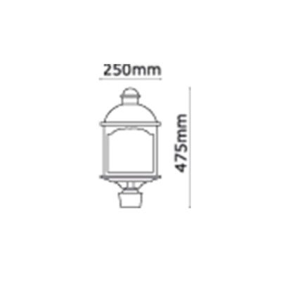 Farol para instalar sobre columna o pilar. Fabricado en fundición de aluminio y vidrio transparente.