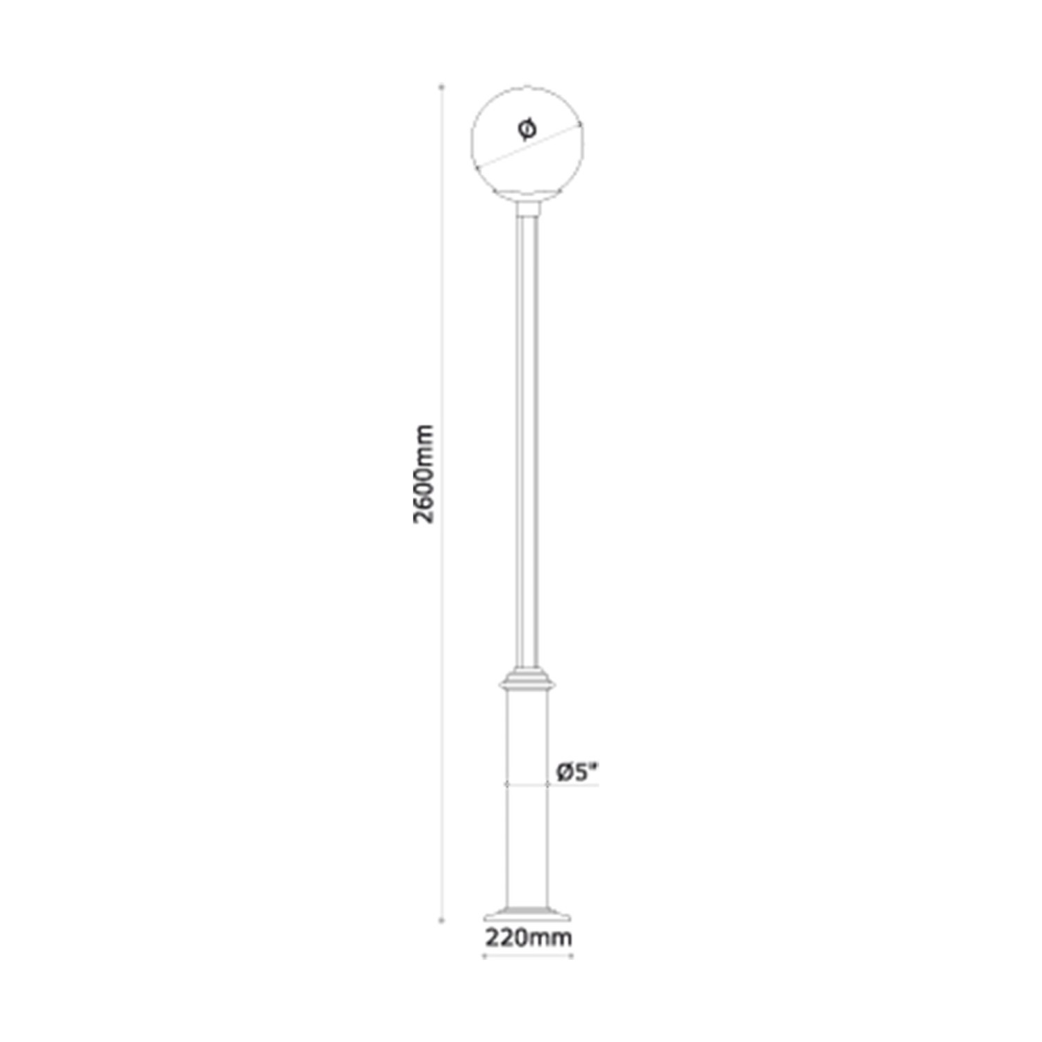 Alto Total: 2600mm Globo : 450mm